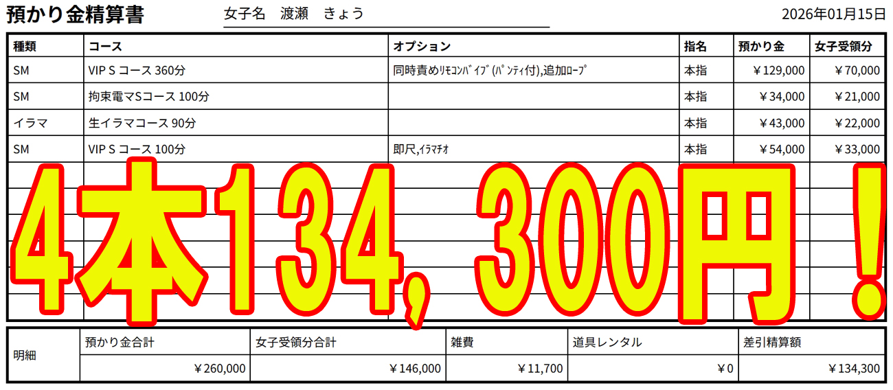 きょうちゃん全て本指名で13万円超え!