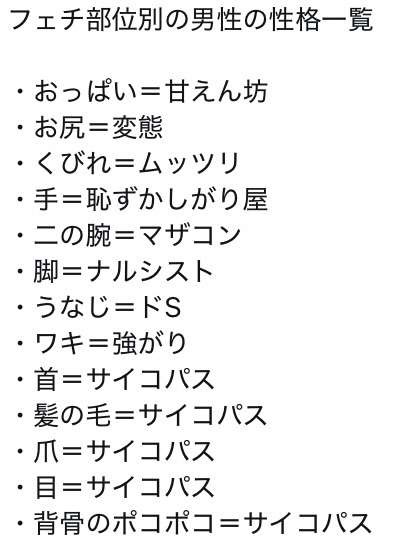 初めましてで会うお客様 とても緊張しますよね? でも、相手の性癖が早いうちに分かったら あなたがリード出来ると思いませんか? という訳でフェチ部別の男性の性格一覧を載せておきます! 何かの参考にしてください お尻が好きな […]