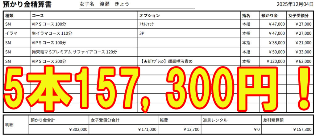 オール本指名157300円!