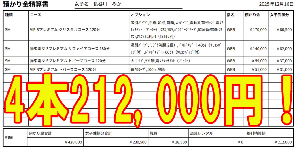 新人のみかちゃん! 入店当初から問い合わせ殺到中! 入れたらラッキーです♪ 4本で212000円! 新人なら20~30万円余裕です! 新宿店 林でした!