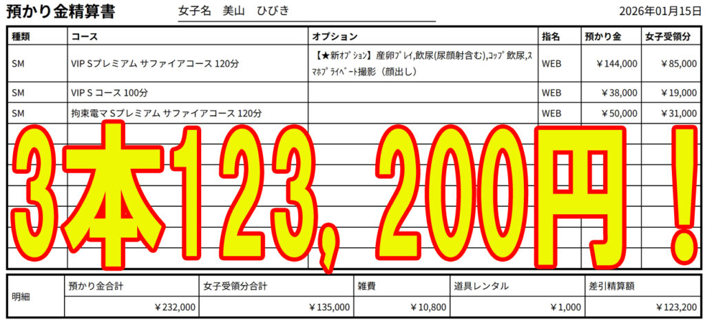 新人のひびきちゃん! うちの店長が絶賛してて 彼女は売れると言っていました。 結果! 3本で12万円超え! 未来を見る目さすがです! 新宿店 林でした!