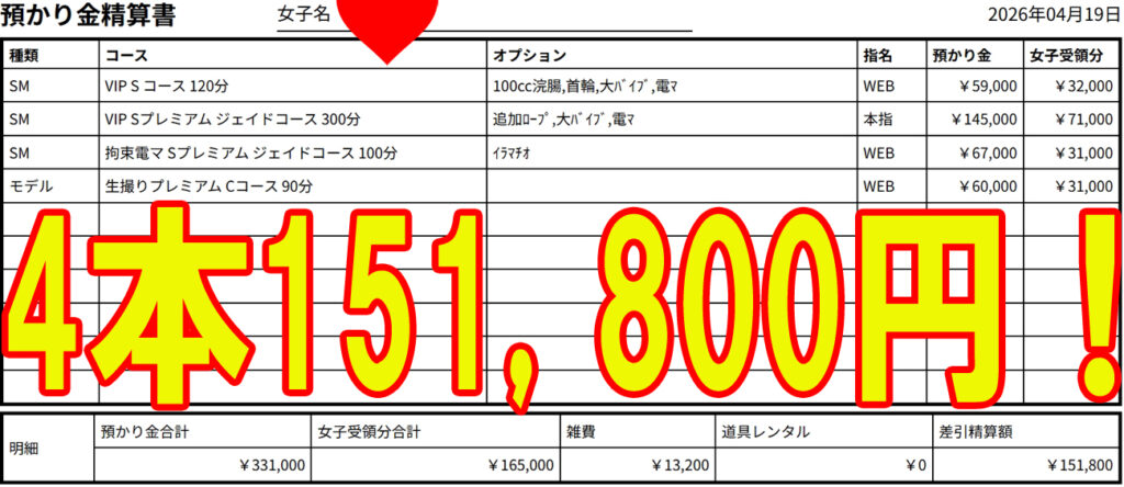 4本15万円超え!昨日の話です。 普通、日曜の夜ってどこのお店も暇だと思うんです。 しかし、当店は違います! 18時出勤の女の子がなんと! 4本入って15万円超え! こんなことが起こるのがSM東京新宿店です! 新宿店 林でし […]
